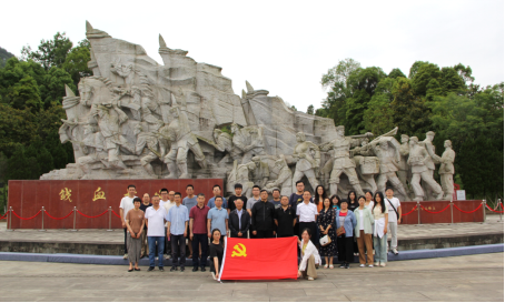 师生党员在川陕革命根据地红军烈士陵园铁血丹心广场合影。