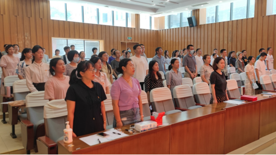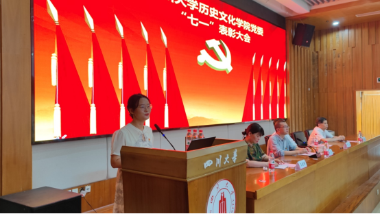 (旅游学院 考古文博学院)2022年“七一”表彰大会于江安校区文科楼二区学术报告厅召开。学院党委书记陶宏、党委副书记姜华、副院长鲍成志以及院工会主席王晓辉出席大会,学院各党支部书记及师生党员代表共60余人参加会议。会议由党委副书记姜华主持。