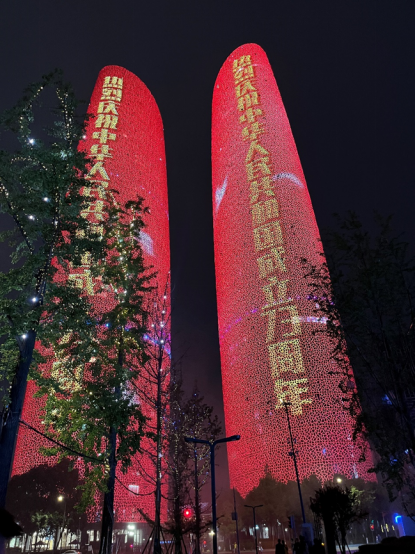 雷玲同志拍摄,“筑梦灯火万家,同庆盛世中华”摄于成都双子塔
