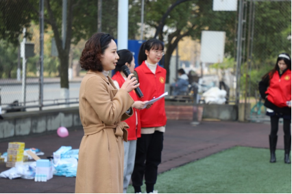 专职组织员石琼老师讲话,她表示本次党日活动将竞技与娱乐有机结合,不仅体现团队合作能力,还兼顾了趣味性和技巧性,希望大家都能在本次活动中积极参与,锻炼良好体魄,培养团结协作精神,展现出青年党员的风采。