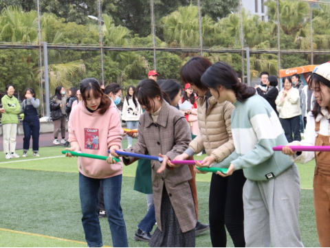 最开始进行的是热身游戏——“五毛一块”,游戏要求同学们根据裁判的所说数字,迅速做出反应抱成团,与裁判所说数字不匹配的小组将被淘汰。该游戏成功活跃了现场气氛,充分调动起大家的积极性。