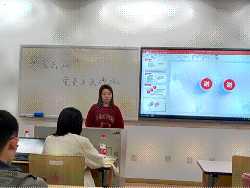 第四批党员学长卢怡冰、杨璐瑜两位嘉宾进行讲解。