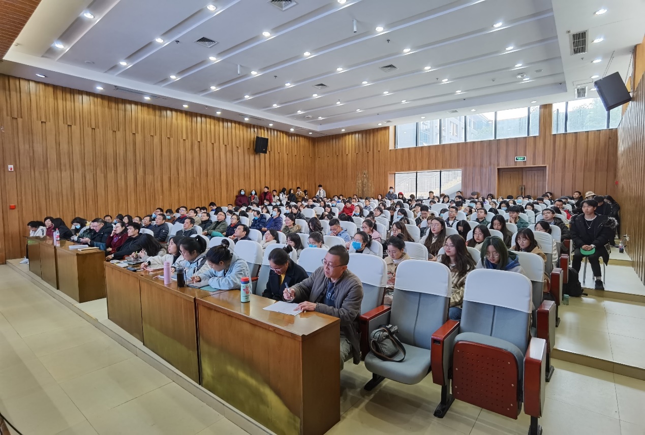 (旅游学院)在江安校区学院报告厅举行“党的十九届五中全会精神宣讲报告会”,特邀学校宣讲团专家张诚教授主讲,院党委副书记姜华同志主持,学院领导班子成员和师生职工党员200余人参加了宣讲报告会。