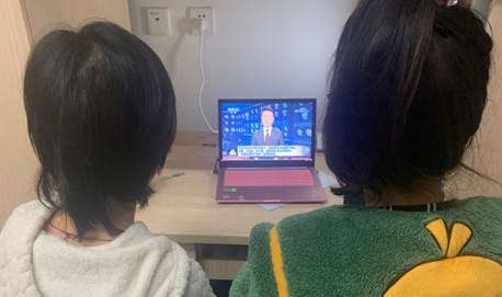 (注:图为支部党员组队观看新闻视频)