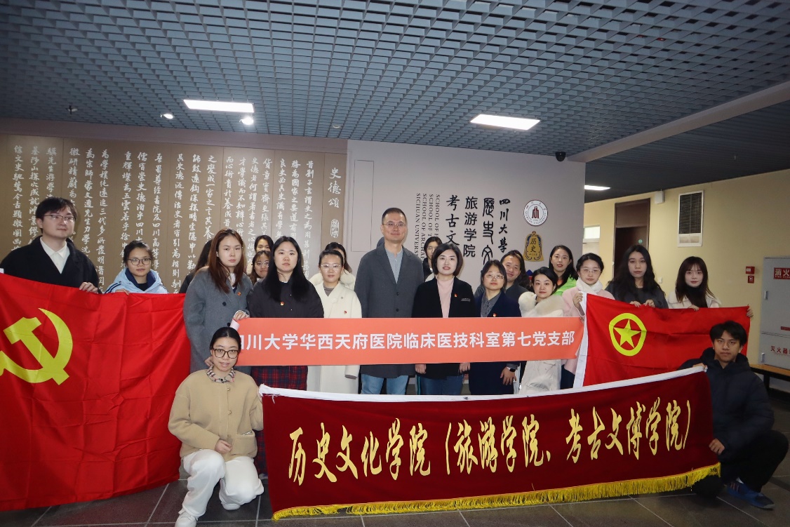 江安本科生第一党支部联合主办的“青铜载古韵,医者送馨声”联建共学活动在江安校区文科楼二区704报告厅顺利开展。华西专家、历史学院师生共计60余人齐聚一堂,以“党建+学术+健康”的跨界融合模式,共赴一场跨越三千年文明与当代医学温度的对话。