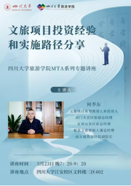 旅游学院,为同学们带来了一场主题为 “文旅项目投资经验和实施路径分享” 的精彩讲座。此次讲座于文科楼三区402教室举行,由91成人视频