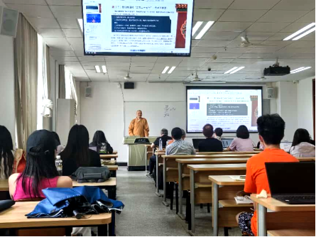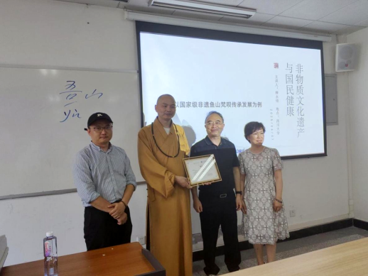 旅游学院,为同学们带来一场主题为“非物质文化遗产与国民健康——以国家级非遗鱼山梵呗及禅拳道功夫传承发展为例”的精彩讲座。此次讲座于江安校区文科楼三区402教室举行。包含来自奥地利等国的10余位留学生及30余位博士和硕士研究生,共同聆听了这场非遗进校园的讲座。