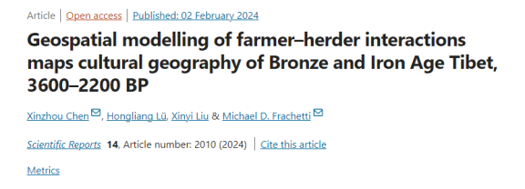 考古科学中心联合美国圣路易斯华盛顿大学考古学家共同完成了一项关于青藏高原史前文化交流格局的研究论文,以《Geospatial modelling of farmer–herder interactions maps cultural geography of Bronze and Iron Age Tibet, 3600–2200 BP》(农牧互动的地理模型描绘了青藏高原青铜至铁器时代(距今3600-2200年)的文化格局),在线发表于Springer Nature旗下的综合性科学杂志Scientific Reports(doi: //doi.org/10.1038/s41598-023-50556-9)。本研究结合了陶器类型学、GIS建模及陶器社会网络分析三种手段,定量分析了研究时段内文化交流模式与农牧互动路线的关系,解释了文化交流的动因。近年来,网络分析在考古学中的应用正在成为国际学术界的前沿课题。在此背景下,本研究融合了网络分析法与中国考古中器物类型学的丰富实践,延展了传统考古学研究的内涵和解释力。本研究也系陶器网络分析法在青藏高原考古中的首次成功尝试。