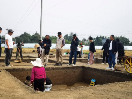 本次实习带队教师索德浩老师、陈心舟老师、焦阳老师向学院领导和老师们介绍了本年度竹瓦街遗址截至目前的发掘情况和现有发现,并带领大家参观了两处发掘区域。老师们在参观时仔细观察了各个探方的地层分布,与同学们亲切交流,探讨重要遗迹现象,并分享了田野工作中的各种经验,为同学们的发掘工作提出宝贵建议。