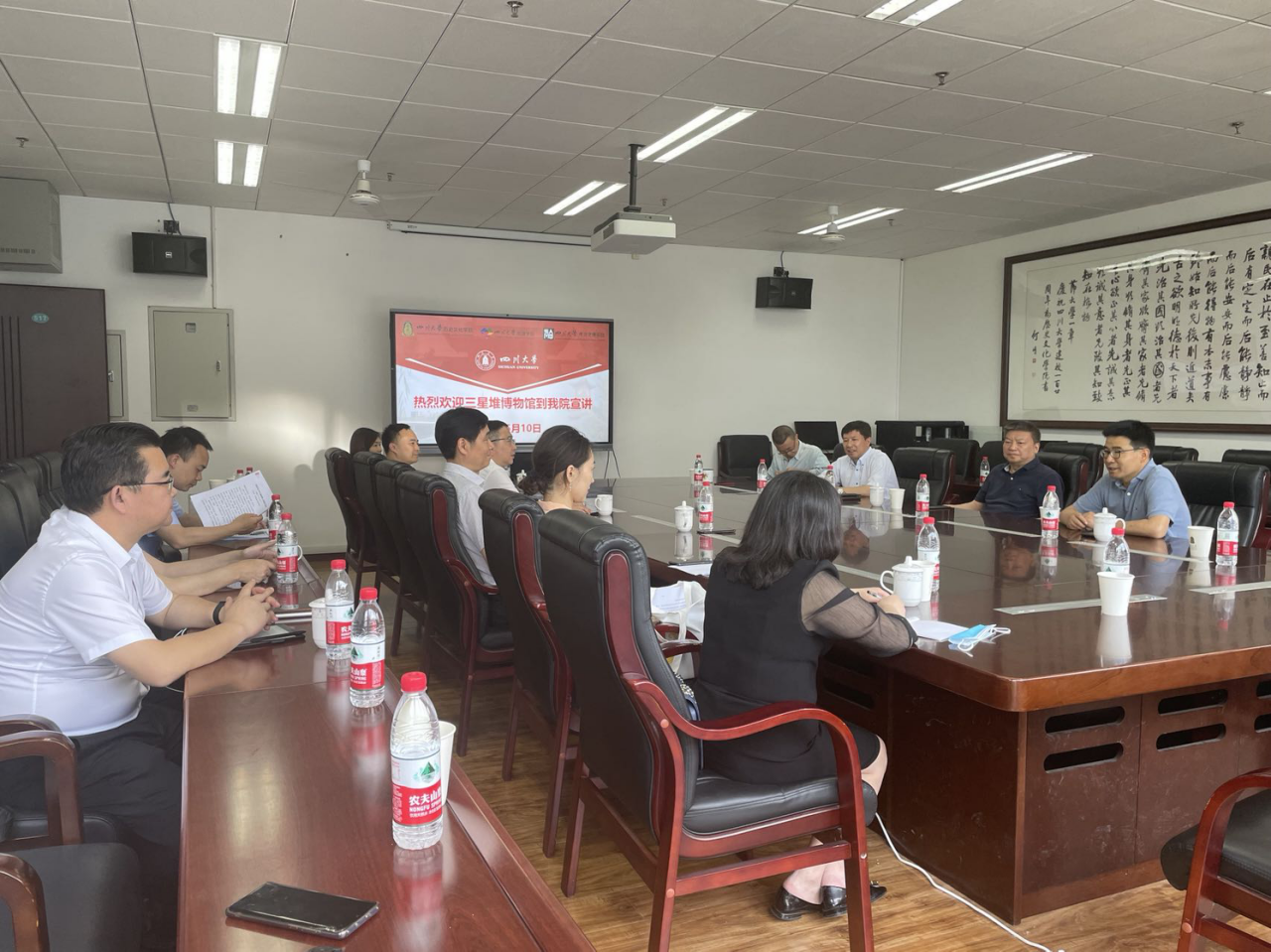 杰出教授霍巍、院长吕红亮、党委副书记姜华、李映福教授等人员与德阳市委组织部一行,围绕三星堆文化保护、考古发掘、文物研究、选人用人等进行座谈,就我院和三星堆博物馆的合作项目达成共识,希望以此为契机,与德阳在人才共育、学术交流、课题研究等方面,开展更宽领域、更深层次、更全方位的合作。