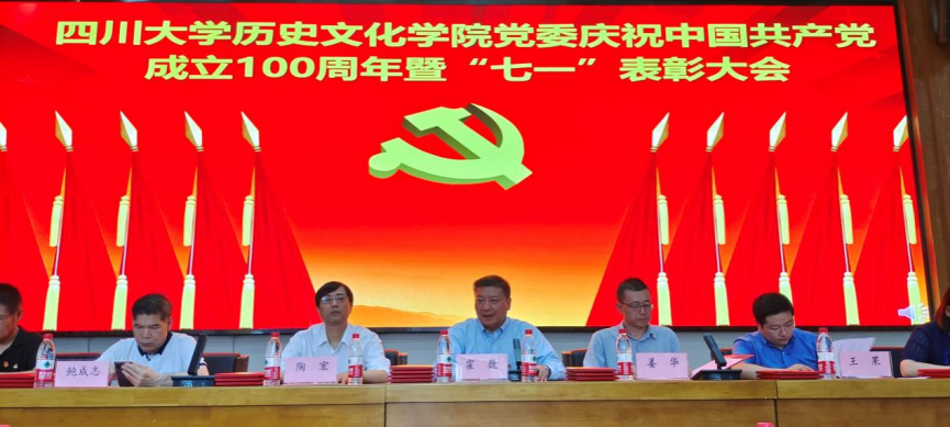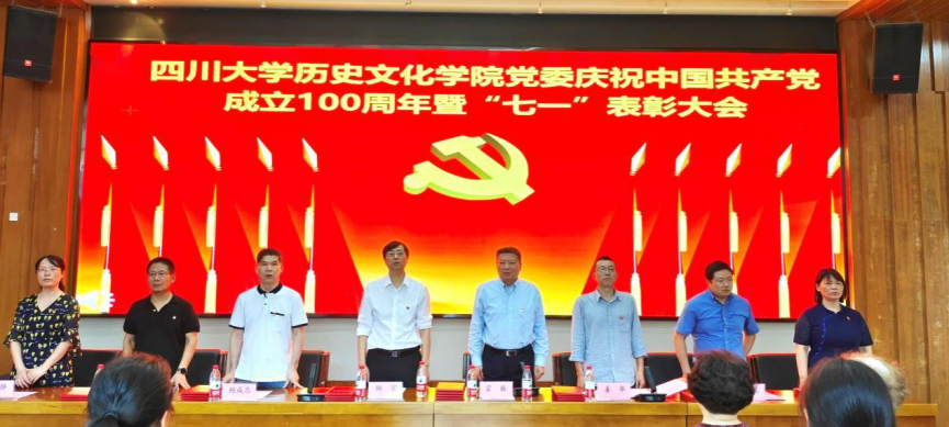 庆祝中国共产党成立100周年暨“七一”表彰大会于江安校区文科楼二区学术报告厅召开。学院党委书记陶宏、院长霍巍、党委副书记姜华、副院长鲍成志、李志勇、王果,以及博物馆副馆长周静和院工会主席王晓辉出席大会,学院各党支部书记及师生党员代表共100余人参加会议。会议由霍巍院长主持。