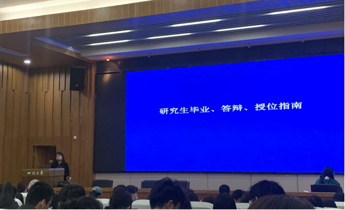 2021年研究生毕业、答辩、授位工作安排会在江安校区文科楼二区负一楼演播厅召开,会议由刘利容老师主持,夏梦颖老师和学院即将6月毕业的硕士研究生参加了会议。