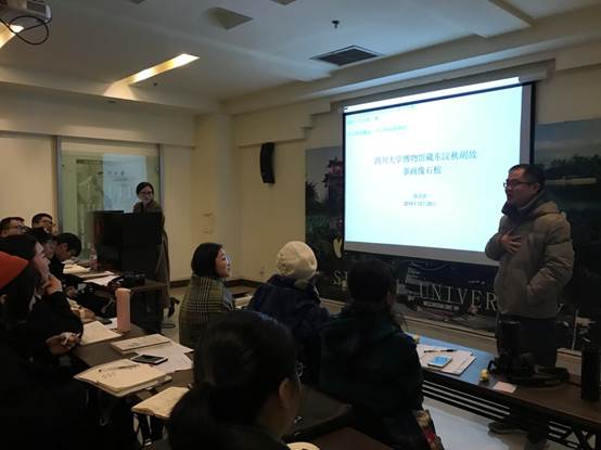 博物馆更进一步的关注。他寄语各专业同学们:本次工作坊意义在于,使我们这样一座具有百年历史的博物馆真正发挥出学术、社会等各个方面的效应。川大博物馆的收藏非常丰富,这当中凝练了几代人辛勤的工作与研究。今天看到这个川大人自己的工作坊,我感到非常高兴,我们川大博物馆有8万多件藏品,这当中相当一部分文物都有自己的故事,如何把它们真正的盘活?资源摆在我们面前,使用什么样的途径,如何使我们的研究发挥更大的学术效应,将其运用于社会、教育、经济、文化等层面?博物馆、文物与我们今天的生活有着千丝万缕的联系。关于藏品和博物馆本体的讨论是一个很好的开端,但是我们的工作永远在路上。我期待着大家能多给我们建议,博物馆、博物馆学、博物馆人、都乐于置身其中,与大家共话博物馆的新未来。