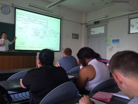王献华教授全程用英语为大家带来了这场精彩的讲座,无论是国际交流营的外国学生还是中方学生,都听得十分仔细、认真。讲座结束后,王献华教授还为部分外国学生答疑解惑,共同探讨相关问题,希望通过本次讲座,加深中西方文化的交流与理解。