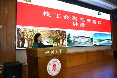 大会在庄严的国歌声中拉开序幕。91成人视频 工会副主席骆红代表校工会发表讲话。她对学院积极落实主体责任,深化两个伟大深度融合,在党的建设、事业发展及工会工作取得成绩表示肯定,并希望学院新一届工会继续围绕学院发展大局,主动作为,全心全意服务教职工,办实事、解难事,继续发扬学院工作用家的温情凝聚人心,家的关怀汇聚合力的优良传统,团结引领全院教职工发奋有为,为学院高质量发展贡献力量。