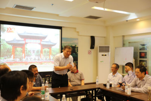 在简短的《川大史学》首发式之后,考古专业校友座谈会于川大博物馆学术报告厅举行。除各级校友外,参加此次座谈会的还有退休已久,年逾8旬的张勋燎、宋治民、马继贤、李克林四位老先生及考古学系师生。会议开始前,各级校友纷纷上前问候四位老先生,表达离校之后对母校、对老师的思念之情,重逢的喜悦更似亲人的久别再聚。座谈会由李映福教授主持,霍巍院长致辞。他首先提议在座的校友及考古学系师生起立向四位老先生鞠躬致意,以感谢他们多年来的辛勤培育。接着,他简要总结了近年来考古学系取得的一系列发展成果,认为不应满足于现有成绩,考古学系的核心竞争力,一是我们能不能够秉持川大考古的传统,同时有所创新,二是现有的师资队伍是否能够适应新形式的发展,三是是否能够培养适合形式发展需要的人才。最后,他简短分析了考古学系在软、硬件方面的优势,认为川大考古充满希望,在将来将有更好的发展。李映福院长随后用PPT简要回顾了川大考古学系的发展历史,对考古学系专业结构、现有师资、招生规模、近年学科发展概况、实践教学、学术交流方面进行了介绍。