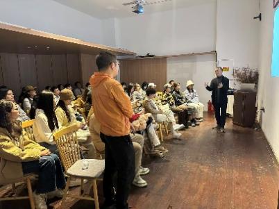 旅游管理专业的同学们在副教授王俊鸿、副教授王晓辉的带领下,走进成都萌想星球文创园,开展案例教学和实地研学活动,解码工业遗址活化的 “城市更新密码”。园区负责人谢祥德先生应邀陪同参观并进行专题分享,通过实地讲解、案例剖析与互动交流,系统解析了该园区在城市更新背景下的文创运营模式与发展路径。